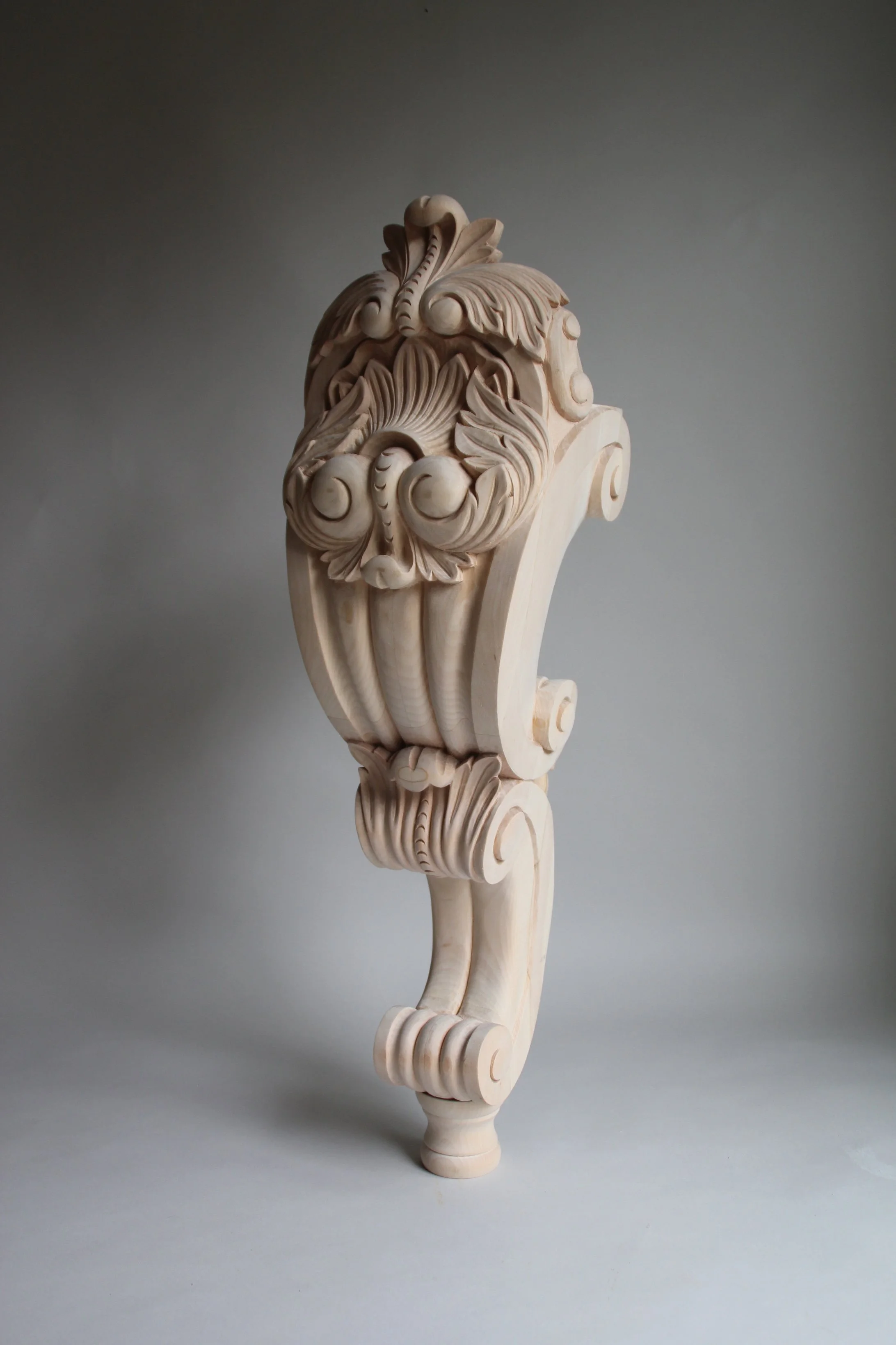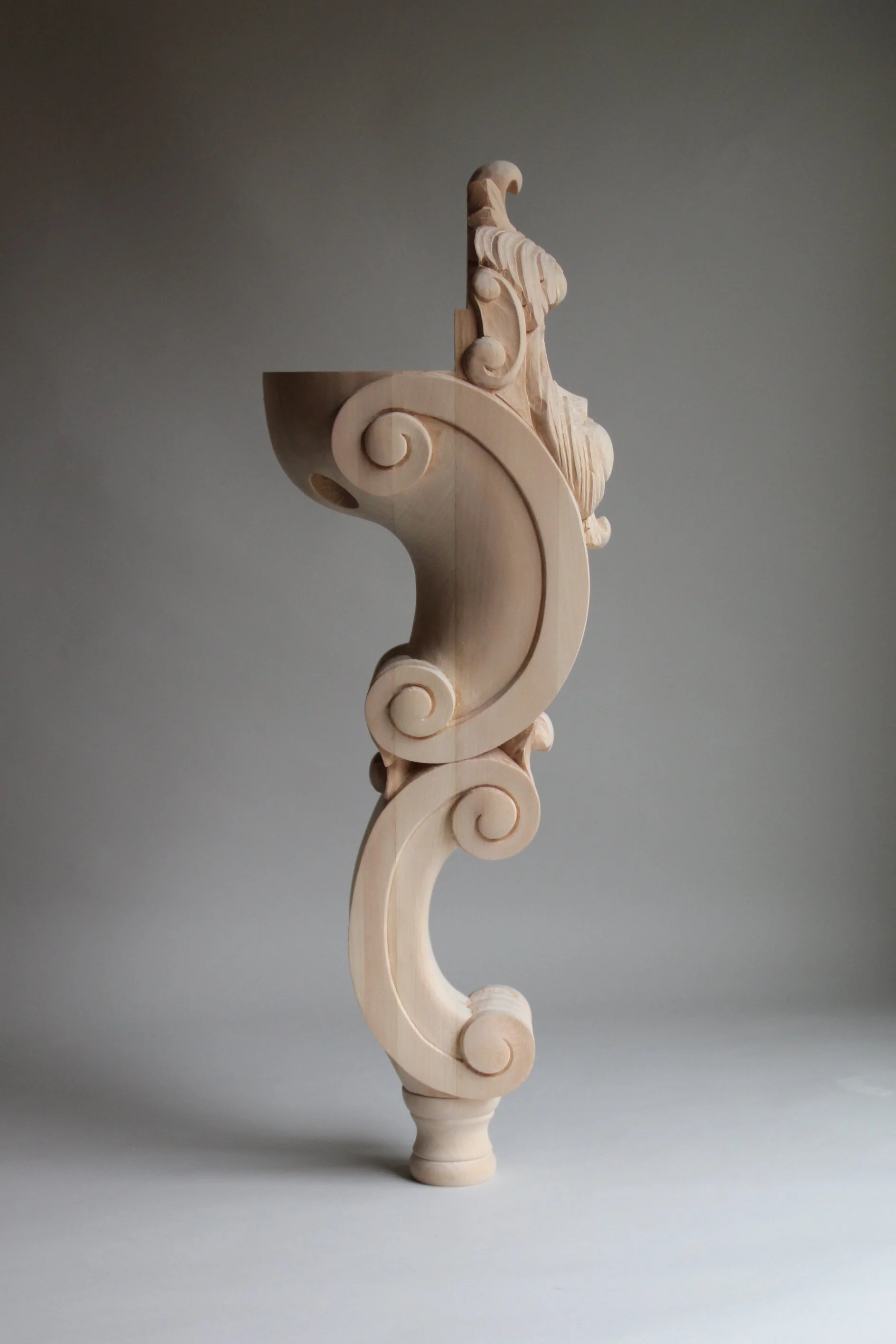 A bespoke feature leg for a grand piano, limewood.